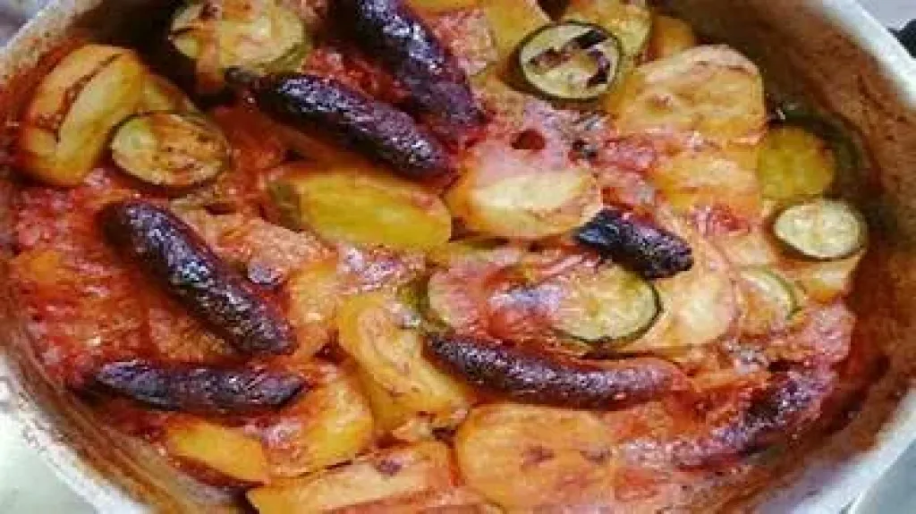طاجن السجق بالخضار والموزاريلا